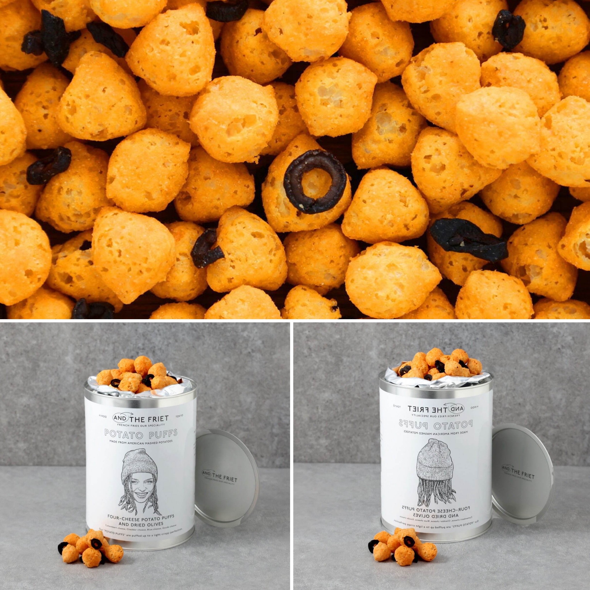 將四種起司(卡曼貝爾乳酪、巧達乳酪、戈達乳酪、藍乳酪)的風味加入馬鈴薯泡芙中,並添加乾燥的鹽漬橄欖,只有廣尾才有的濃郁4種起司和橄欖的美味。
