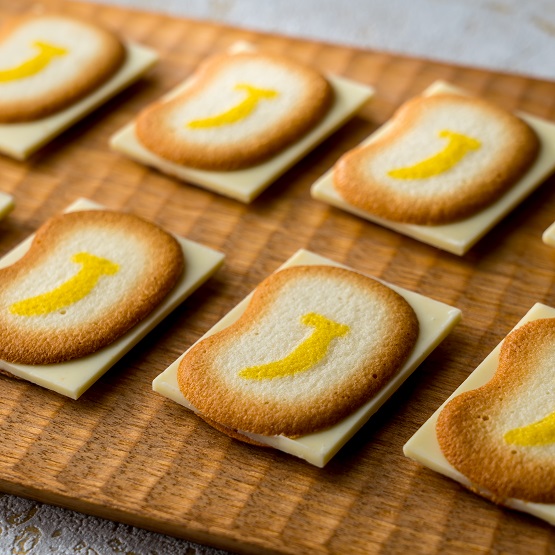 之間,一咬下就會享受融化在嘴裡的香蕉巧克力的美味以及與輕盈的貓舌頭餅乾完美搭配的風味。