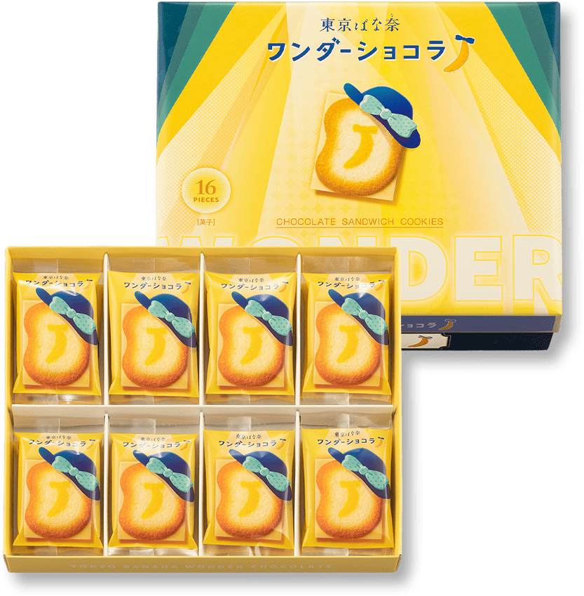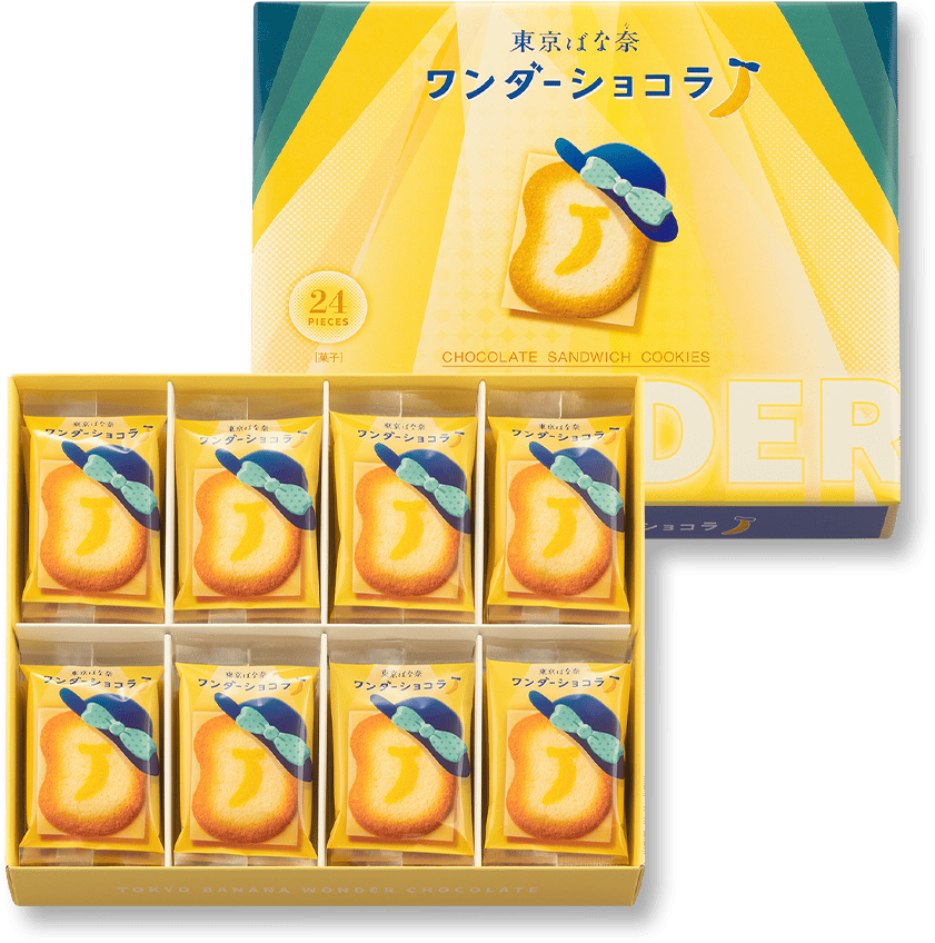 東京芭娜娜除有大受歡迎的香蕉卡士達蛋糕外,推出另一款奶味香蕉巧克力夾心餅,輕盈的餅乾加上東京芭娜娜知名的香蕉巧克力夾心,清爽餅乾遇上香蕉巧克力的美味,讓人驚艷。