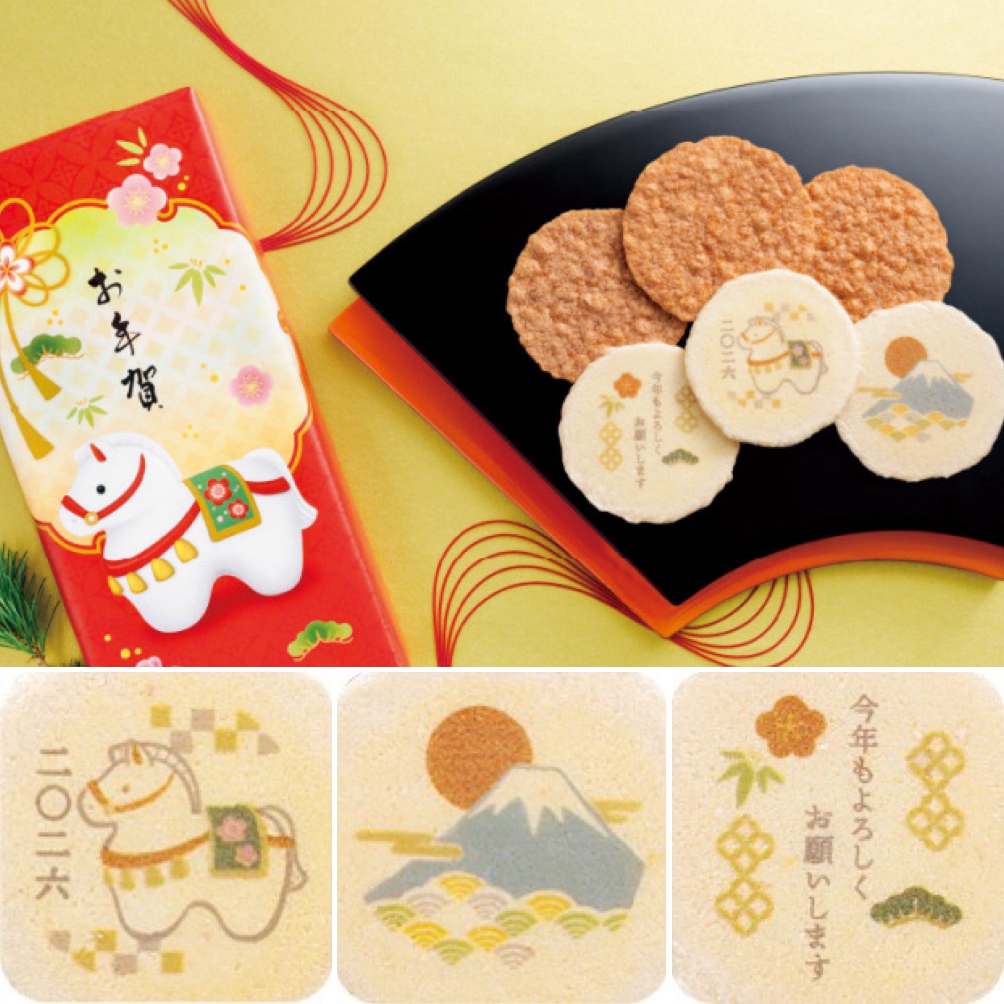 每年的限定賀年禮盒,很漂亮又有質感,賀年版禮盒中會有當年度生肖蝦餅,可愛造型又充滿節慶喜氣,在日本通常前一年度12月中過後就很容易斷貨✨✨