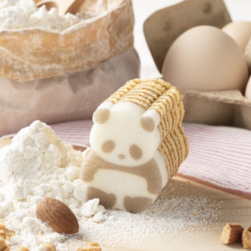 搖搖搖、天真無邪的原味貓熊,使用雞蛋和杏仁散發著淡淡的香味的麵糰,精心烤成年輪蛋糕,最上層使用食品打印及水刀切割技術,做成可愛的貓熊造型,可一邊慢慢脫模一邊享用。