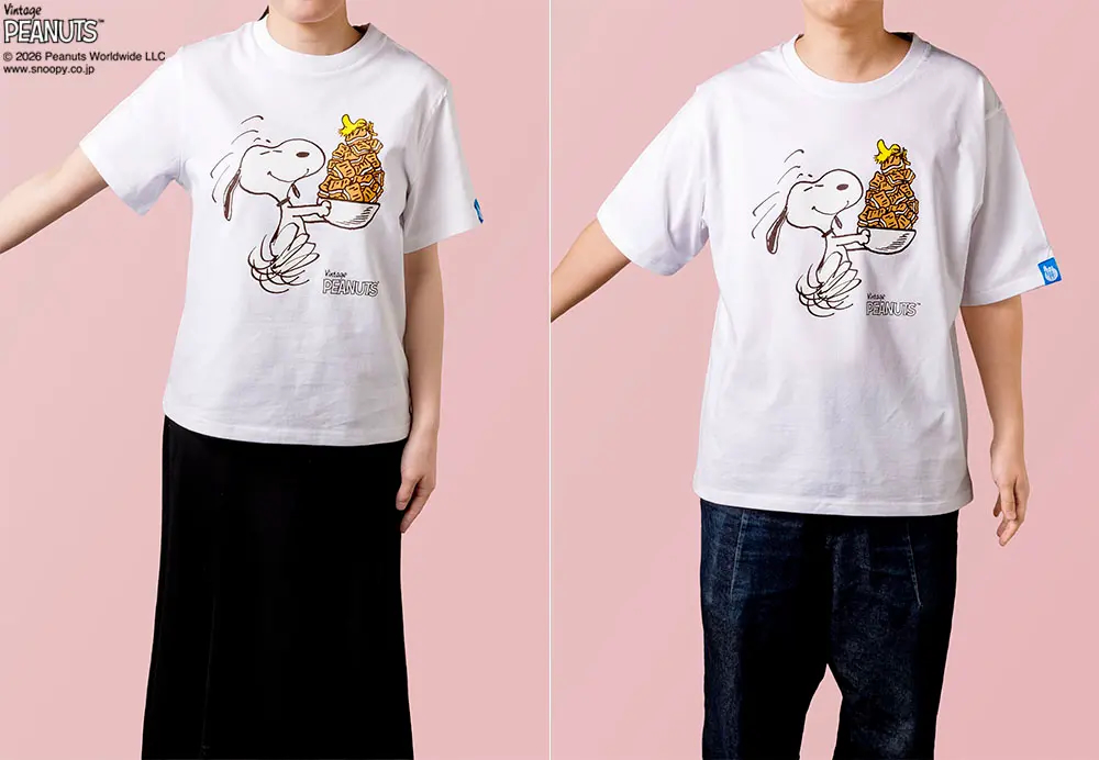 看了、穿著都會開心的可愛T恤,有著可愛的捧著滿滿「砂糖奶油樹」的史努比及糊塗塌客(Woodstock)圖樣,砂糖奶油樹與史努比公司Peanuts合作的可愛原創設計。