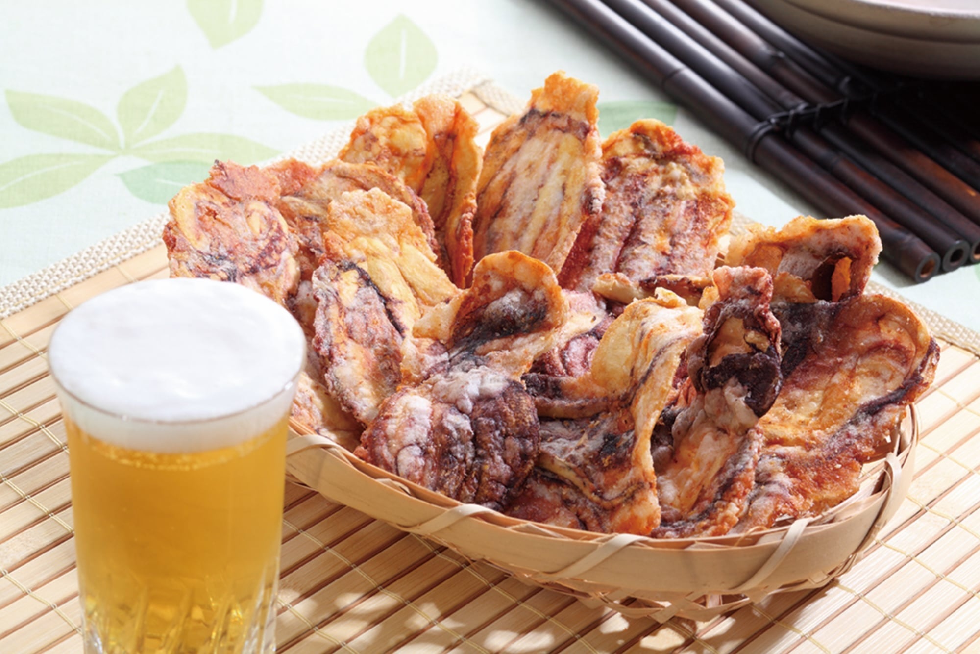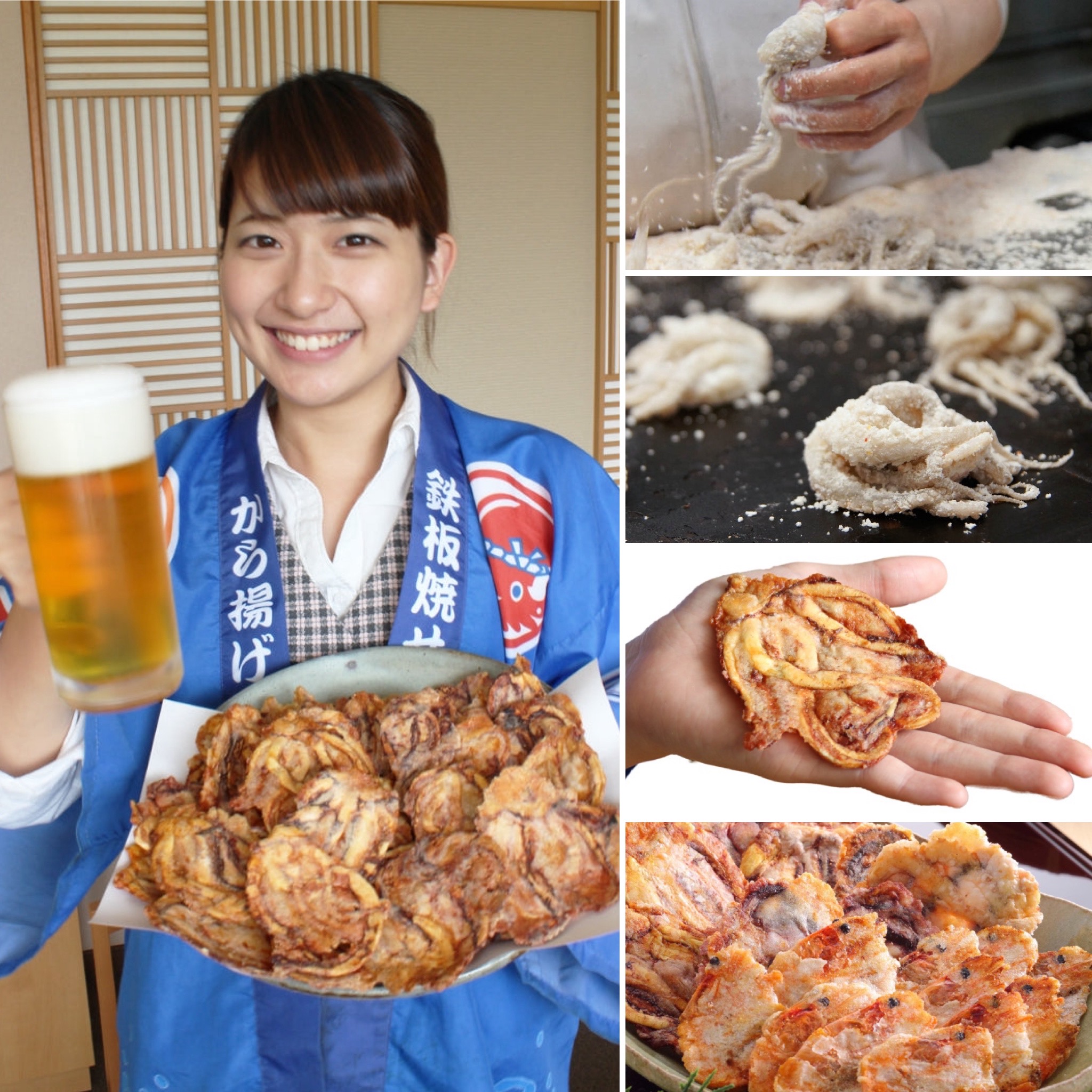 奢侈地使用整隻海鮮食材與一般海鮮仙貝(煎餅)不同,炸雞餅是將真正的章魚、將章魚、魷魚等海鮮食材,整隻烤制後後變得脆脆的,是海鮮食材直接做成了仙貝(煎餅)的真實口感,咬下一口後就能感受到原本食材的美味和香氣。