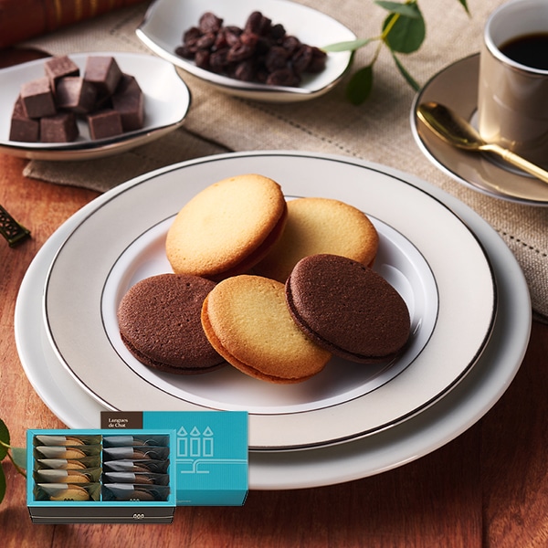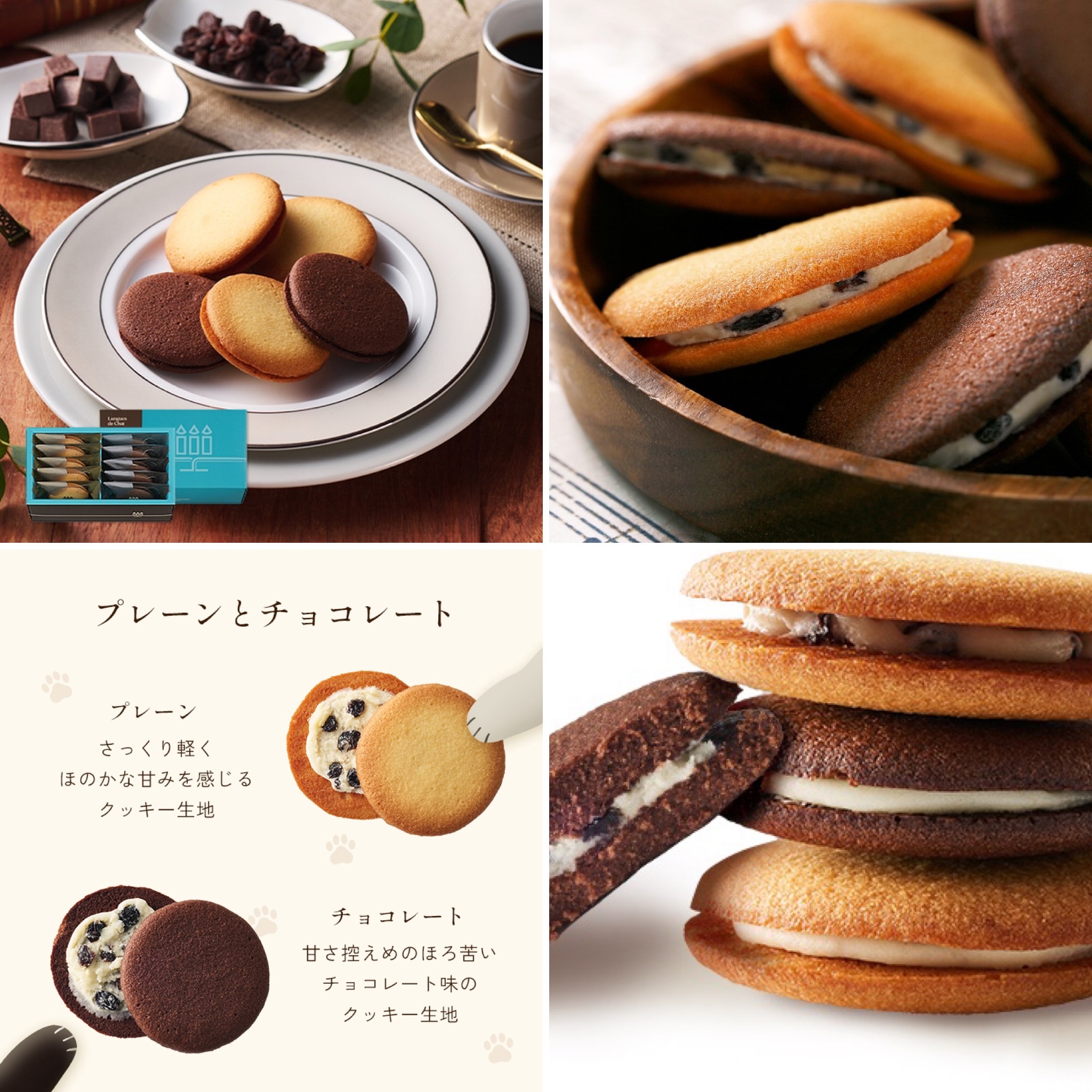 口感酥脆的、厚烤朗格多沙(貓舌頭餅乾),夾了加了蘭姆葡萄乾奶油,有經典奶油、巧克力兩種餅乾,是招牌費南雪外另一款深獲粉絲們喜愛的熱門點心!