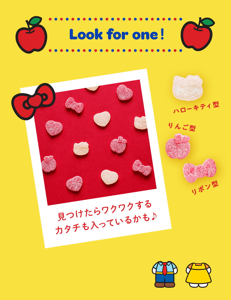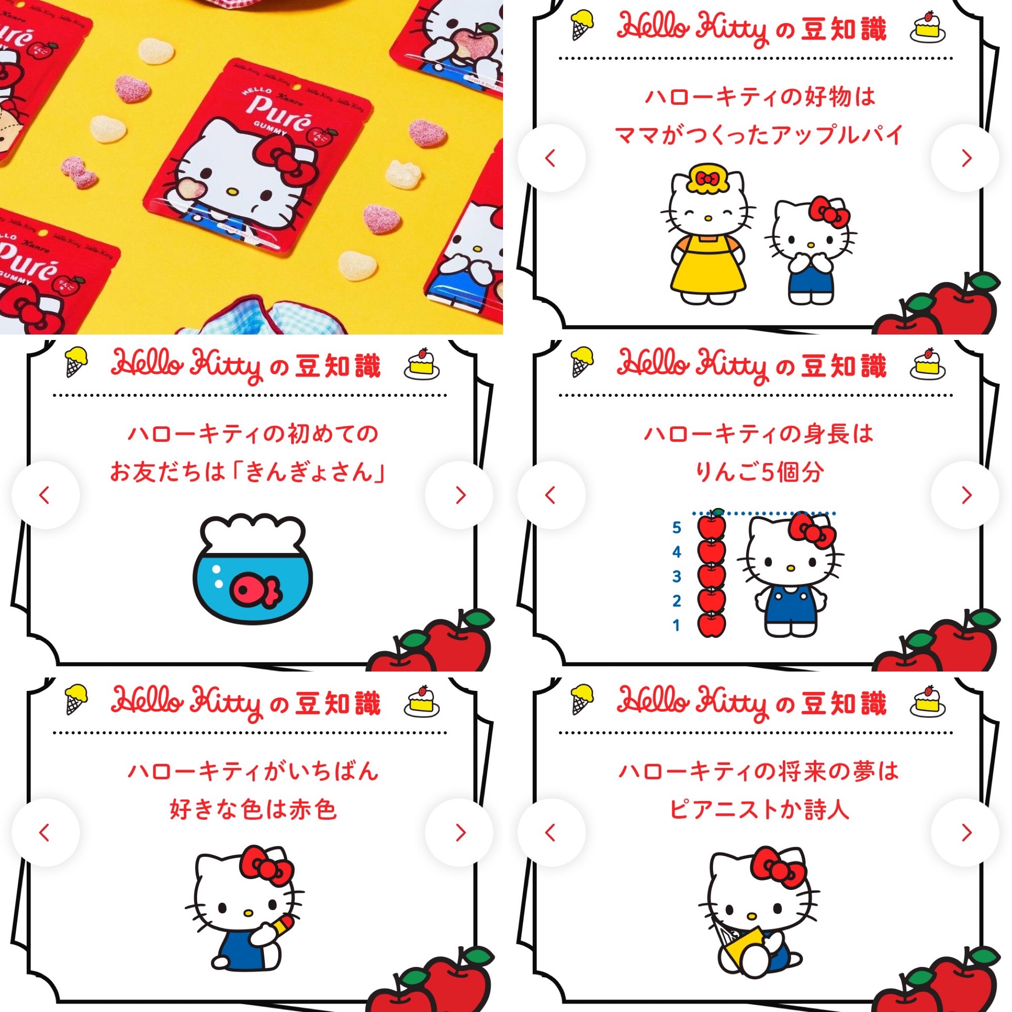 外,還有機會發現 Hello Kitty 造型、蘋果造型或緞帶形狀的軟糖,包裝袋設計共有5種封面,袋子背後還有復古可愛的插圖和Kitty的小知識哦☆