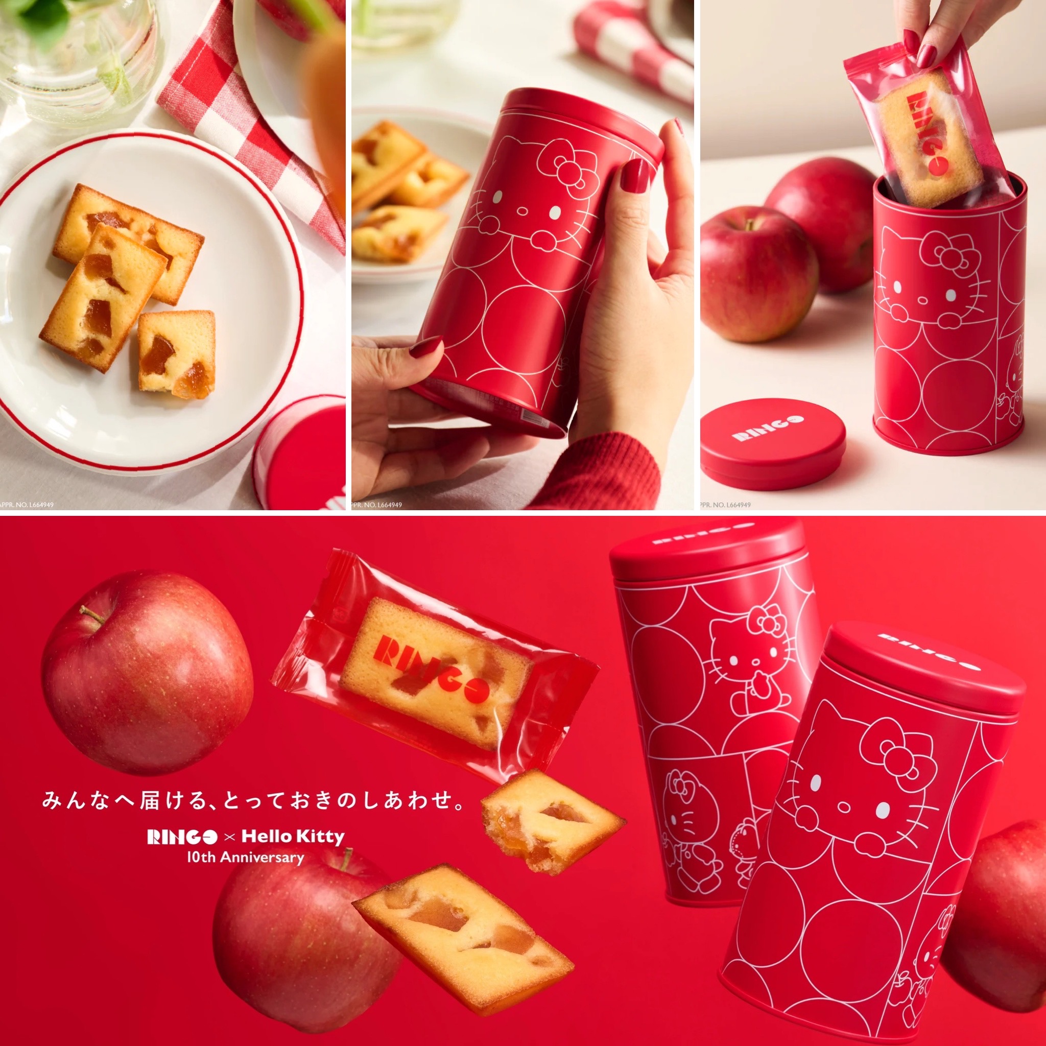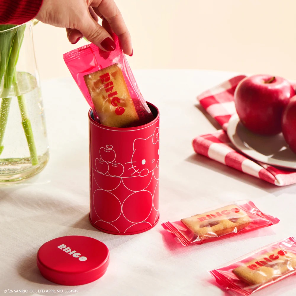 RINGO 10週年慶特別與「Hello Kitty」合作推出聯名紀念款鐵,除可品嚐獨家的蘋果費南雪美味外,美的不得了的Hello Kitty鐵罐上有Hello Kitty和朋友Tiny Chum(泰迪熊)一起散步的可愛圖樣,看了就會讓人不禁嘴角上揚的好心情,還能留下來珍藏或當做收納罐歐!