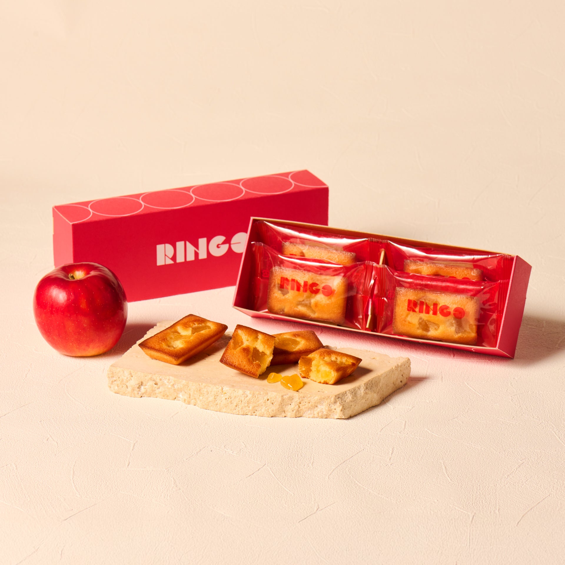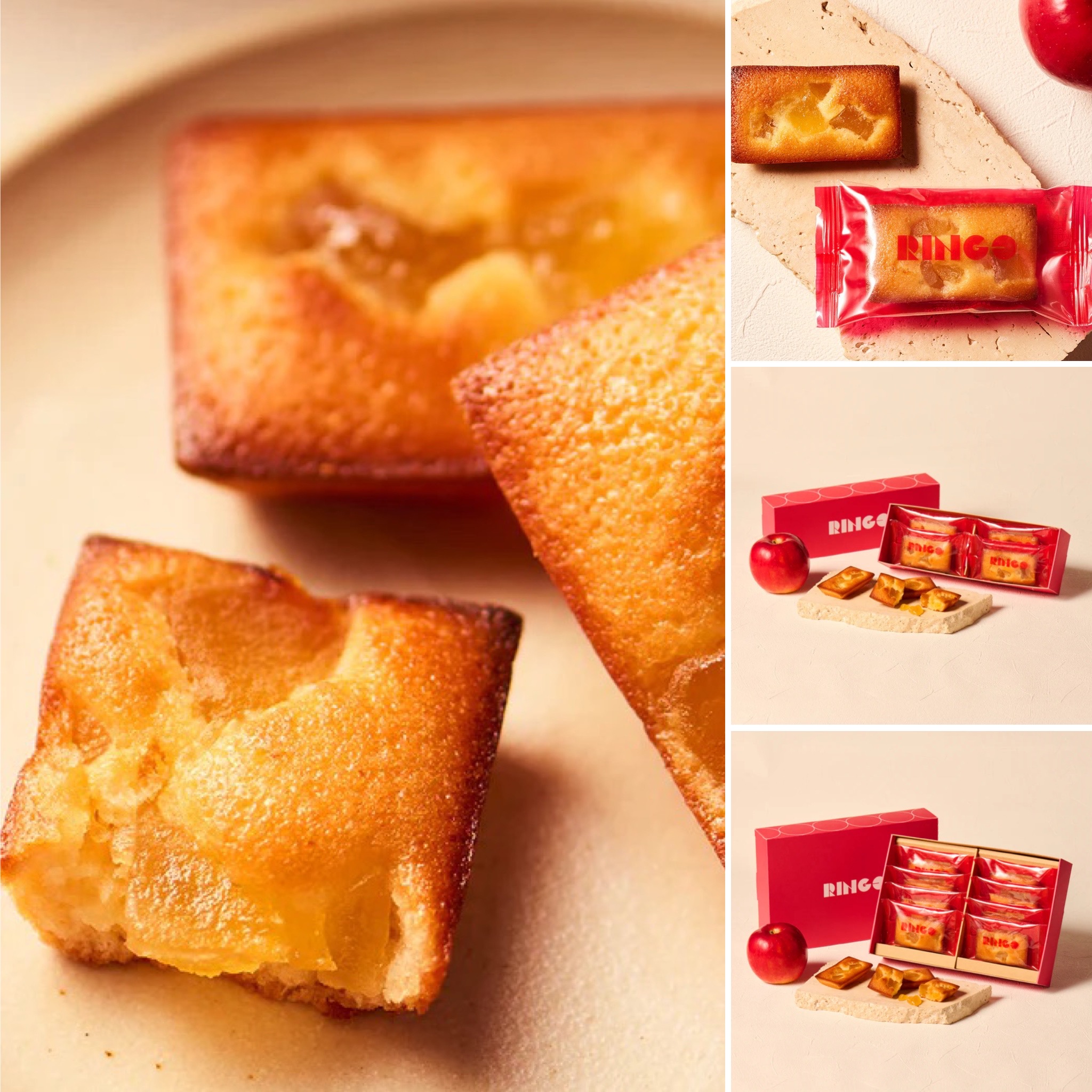 可惜的是美味的蘋果派只有去日本當地才能品嚐到,為讓不去日本也能品嚐到RINGO美味的蘋果點心,Ringo特別推出了獨家的『蘋果費南雪』,奶香濃郁鬆軟濕潤的費南雪搭配大塊的蜜醃日本國產富士蘋果塊,這樣的美味與用心只有蘋果派專家RINGO才能創作出來,讓沒法常去日本或者去日本玩後可以帶回家與親友一起品嚐RINGO的蘋果點心!